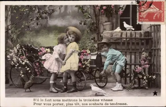 Ak Kinder vor einem mit Blumen geschmückten Automobil