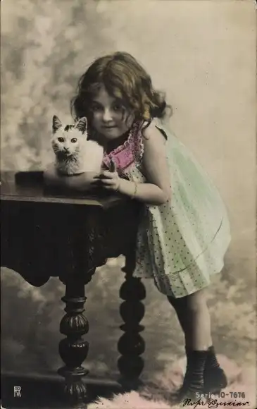 Ak Kinderportrait, Mädchen mit Katze
