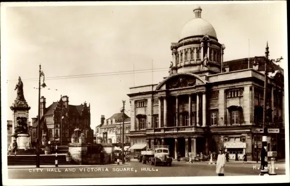 Ak Kingston upon Hull Yorkshire, City Hall and Victoria Square