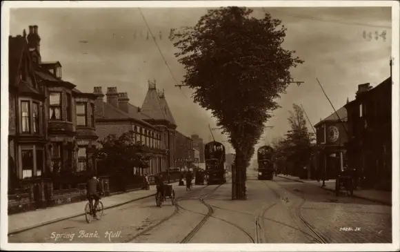 Ak Kingston upon Hull Yorkshire England, Spring Bank, Straßenpartie