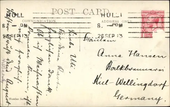 Zustand, siehe Scan, gelaufen, 1913 - ca 14 cm X 9 cm
