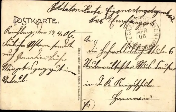 Zustand, siehe Scan, gelaufen, 1906 - ca 14 cm X 9 cm