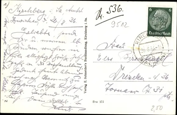 Zustand, siehe Scan, gelaufen, 1936 - ca 14 cm X 9 cm