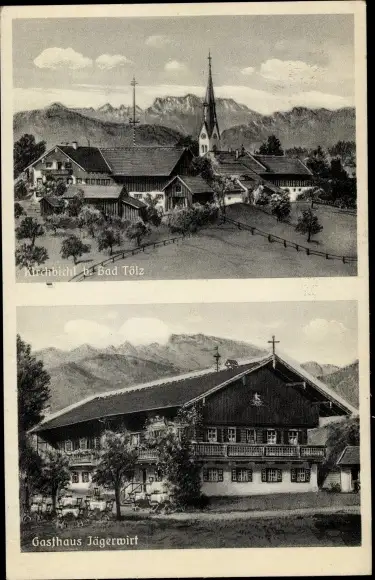 Ak Kirchbichl Bad Tölz in Oberbayern, Teilansicht, Gasthof Jägerwirt