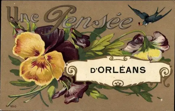 Ak Kitsch, Blumen, Schwalbe, Stiefmütterchen
