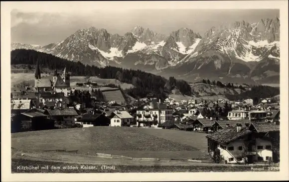 Ak Kitzbühel in Tirol, Ortsansicht mit dem wilden Kaiser