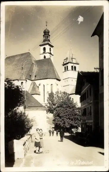 Ak Kitzbühel in Tirol, Straßenpartie mit Kirche