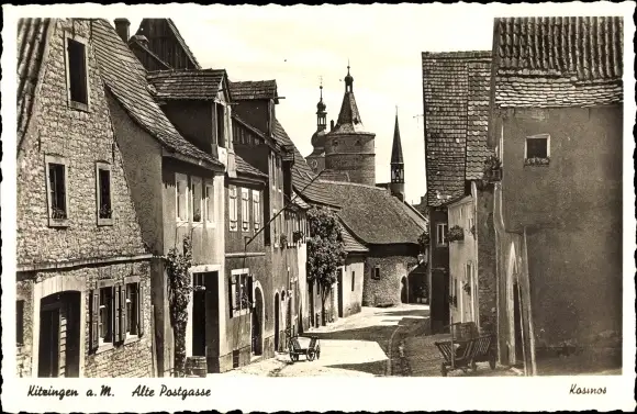 Ak Kitzingen in Mainfranken Bayern, Alte Postgasse, Wohnhäuser, Turm