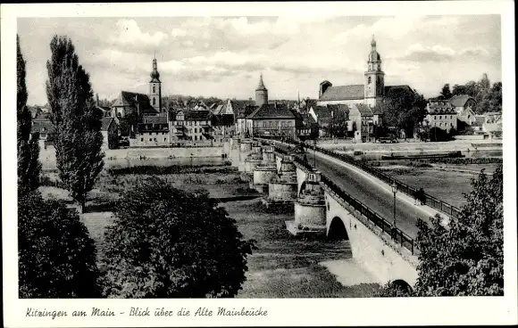 Ak Kitzingen in Mainfranken Bayern, Blick über die Alte Mainbrücke