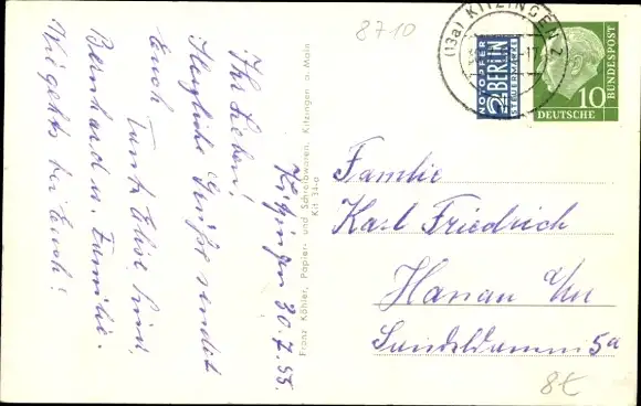 Zustand, siehe Scan, gelaufen, 1955 - ca 14 cm X 9 cm