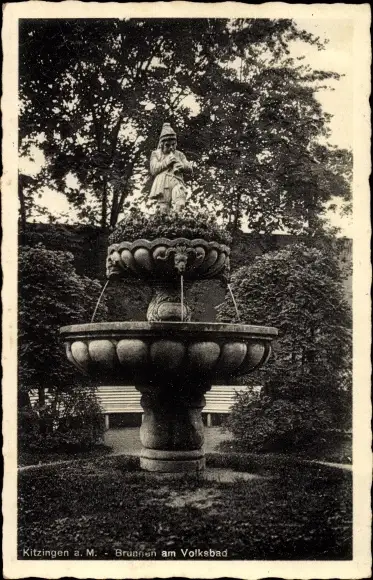 Ak Kitzingen in Mainfranken Bayern, Brunnen am Volksbad