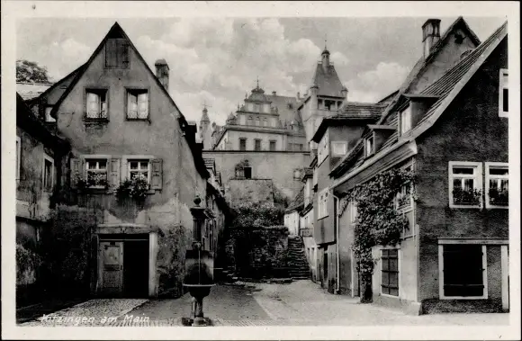 Ak Kitzingen in Mainfranken Bayern, Straßenansicht, Platz, Springbrunnen