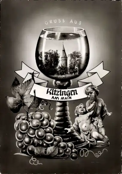 Ak Kitzingen in Mainfranken Bayern, Weinglas, Rebe, Trauben
