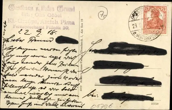 Zustand, siehe Scan, gelaufen, 1918- Bes. Otto Göbel - ca 14 cm X 9 cm