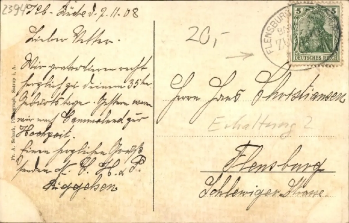 Zustand siehe Scan, gelaufen, 1908 - ca 14 cm X 9 cm