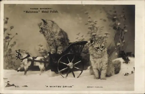 Ak Kleine Katzen, Kätzchen, Kutsche, Spielzeug