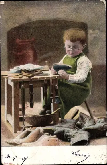 Ak Kleiner Junge als Schuster