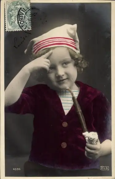 Ak Kleiner Junge mit Pfeife