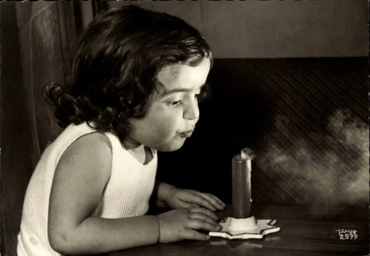 Ak Kleines Mädchen beim Auspusten einer Kerze