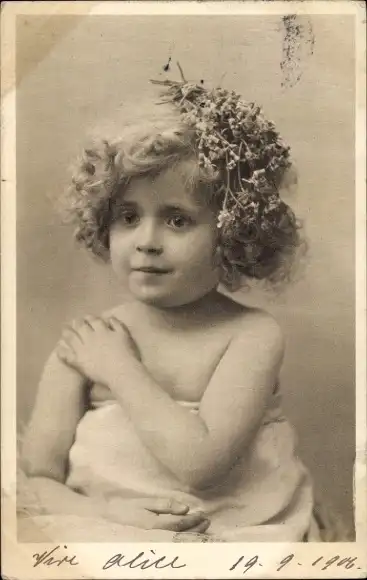 Ak Kleines Mädchen mit Blumen im Haar