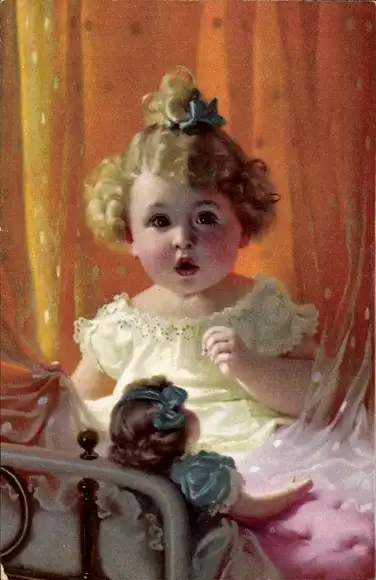 Ak Kleines Mädchen mit ihrer Puppe, Blond, Novitas