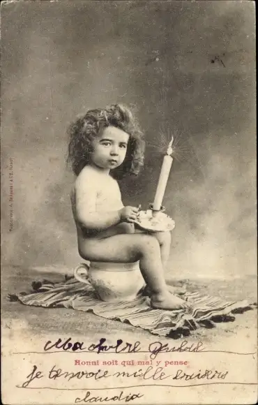 Ak Kleinkind mit Kerze auf dem Nachttopf