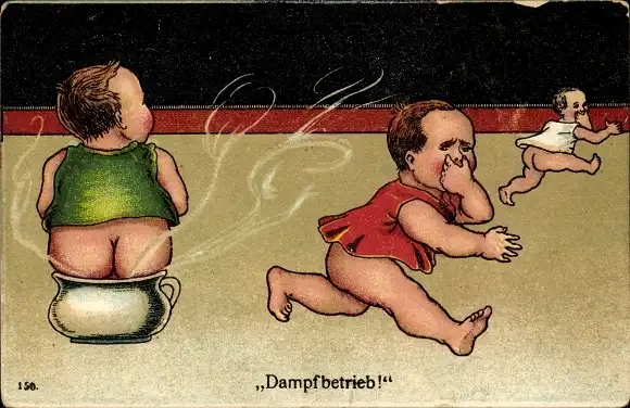Ak Kleinkind sitzt auf Nachttopf und die anderen flüchten vor dem Geruch, Dampfbetrieb