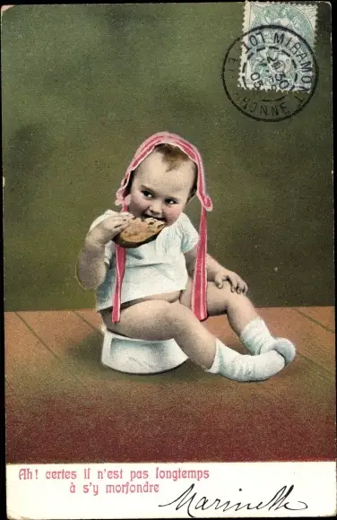Ak Kleinkind sitzt essend auf dem Nachttopf