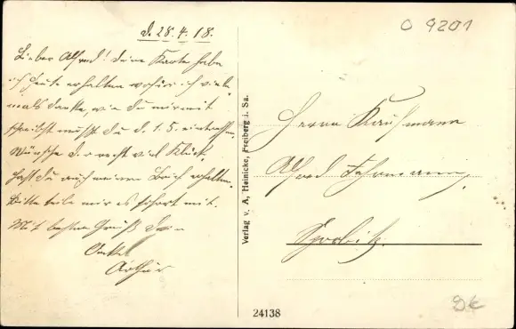 ungelaufen, Rückseite beschrieben, datiert 1918, Ecken bestoßen, Eckknick rechts oben, sonst guter Zustand - Inh.: Richard Lautzsch