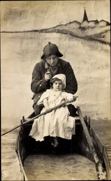 Ak Kleinwaabs Waabs in Holstein, Mutter mit Tochter im sinkenden Boot