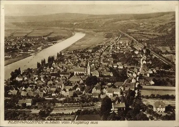 Ak Kleinwallstadt in Unterfranken, Fliegeraufnahme