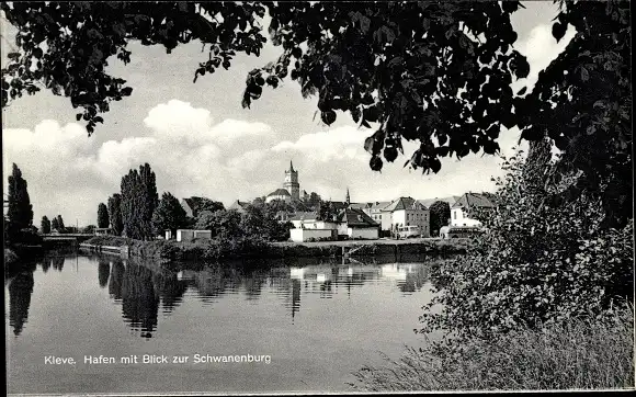 Ak Kleve am Niederrhein, Hafen mit Blick zur Schwanenburg