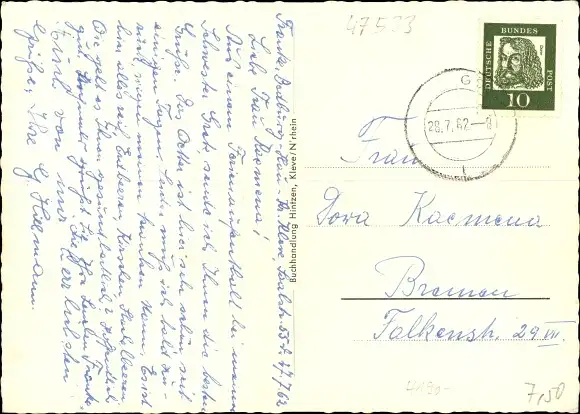 Zustand, siehe Scan, gelaufen, 1962 - ca 15 cm X 11 cm