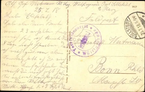 Zustand, siehe Scan, gelaufen, 1918 - ca 14 cm X 9 cm