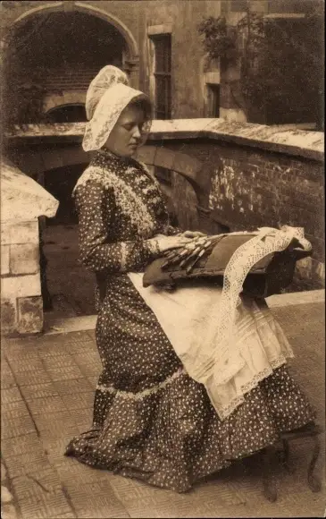 Ak Klöpplerin bei der Arbeit, Volkstracht