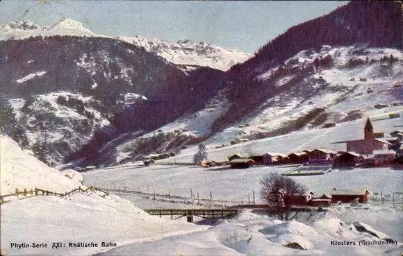 Ak Klosters Kt. Graubünden Schweiz, Serie Phytine XXI, Chemin de fer rhelique, Wintermotiv
