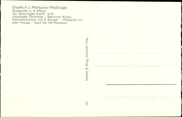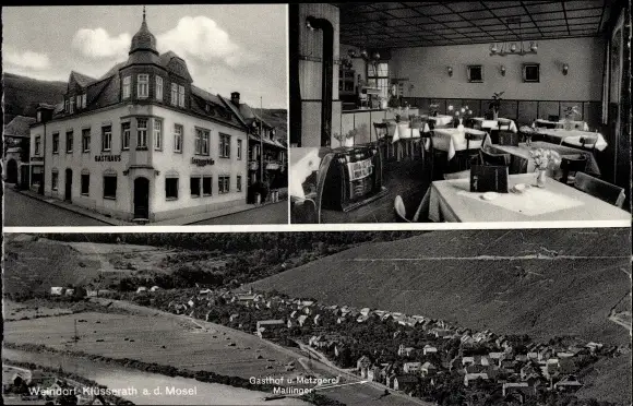 Ak Klüsserath an der Mosel, Gesamtansicht, Gasthof Metzgerei Mallinger