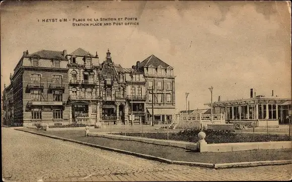 Ak Knokke Heist Heyst Knocke sur Mer Westflandern, Place de la Station et Poste