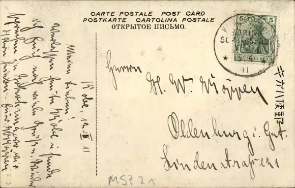 Zustand, siehe Scan, gelaufen, 1911- MSP 21 - ca 14 cm X 9 cm