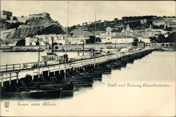 Ak Koblenz, Schiffbrücke, Festung Ehrenbreitstein