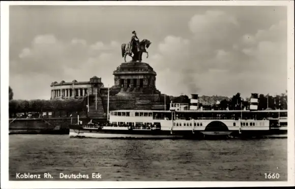 Ak Koblenz am Rhein, Deutsches Eck, Denkmal, Passagierschiff