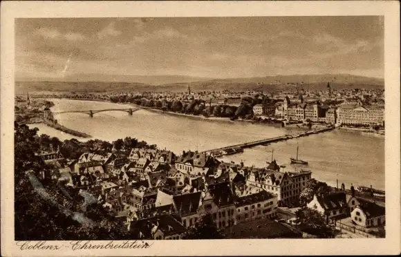 Ak Koblenz am Rhein, Ehrenbreitstein, Ortsansicht, Rhein