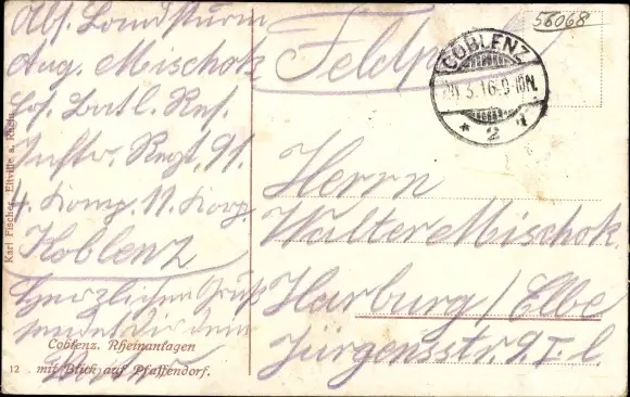 Zustand, siehe Scan, gelaufen, 1916 - ca 14 cm X 9 cm