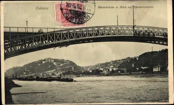 Ak Koblenz am Rhein, Rheinbrücke mit Blick auf Ehrenbreitstein