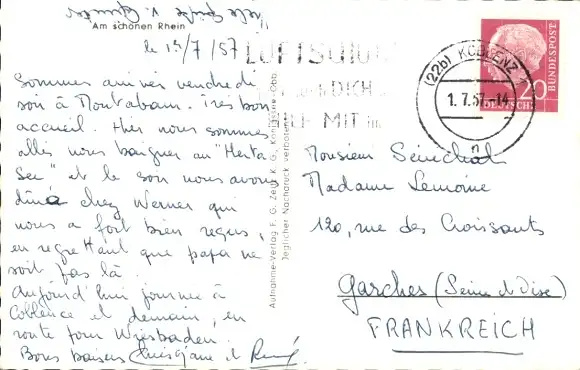 Zustand, siehe Scan, gelaufen, 1957 - ca 14 cm X 9 cm
