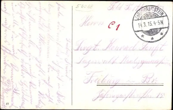 Zustand, siehe Scan, gelaufen, 1915 - ca 14 cm X 9 cm