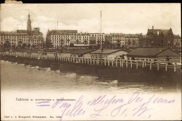 Ak Koblenz am Rhein, mit Schiffbrücke von Ehrenbreitstein