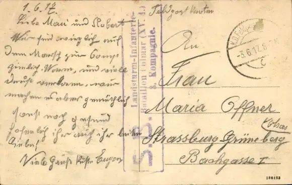 Zustand, siehe Scan, gelaufen, 1917 - ca 14 cm X 9 cm