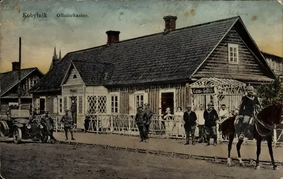 Ak Kobylnik Westpreußen, Offizierkasino, Deutsche Soldaten in Uniform, Pferd