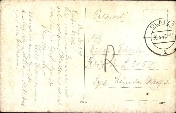 Zustand, siehe Scan, gelaufen, 1943 - ca 9 cm X 14 cm